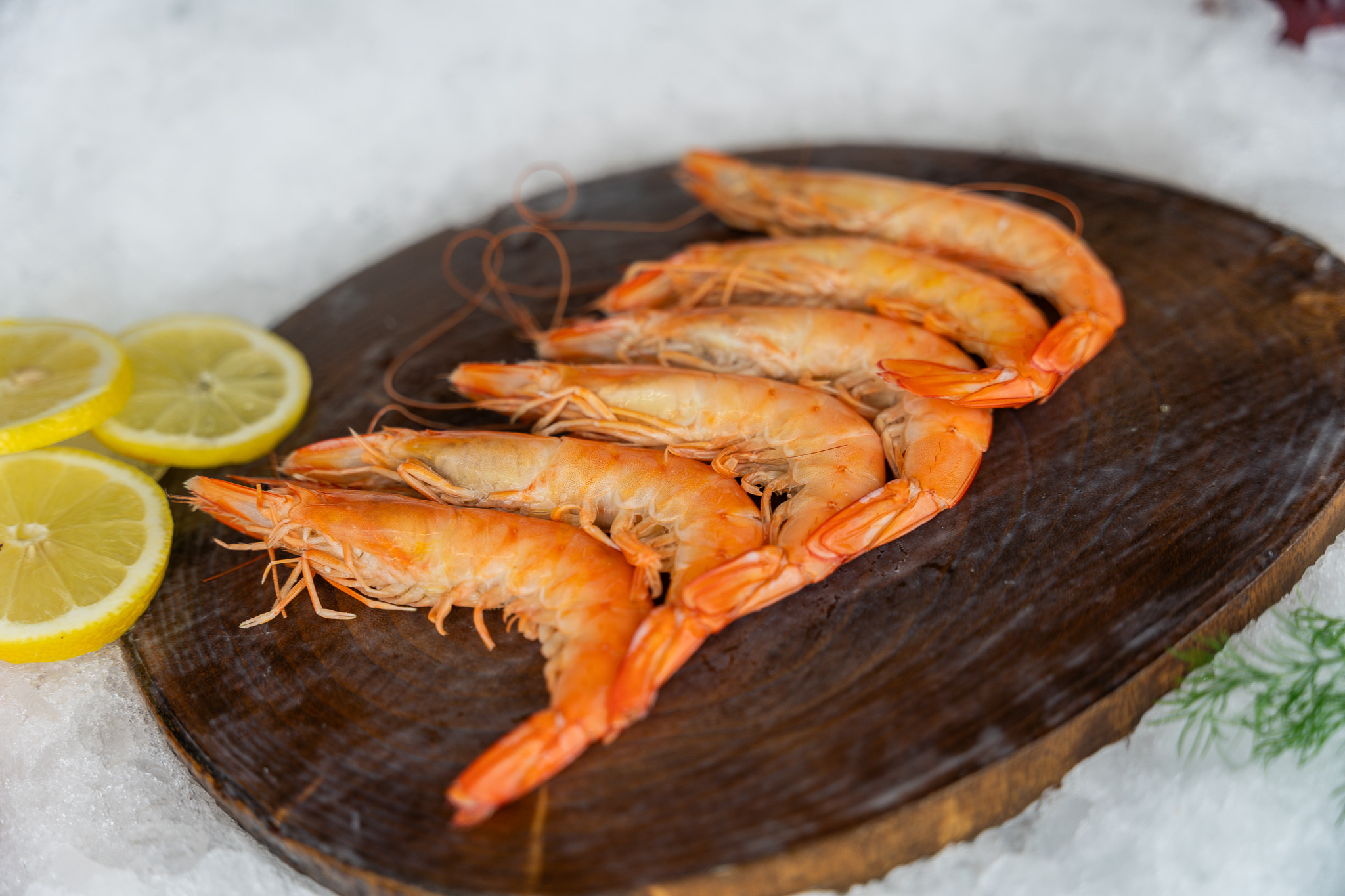 Gamba blanca cocida, lista para servir. Dulce, fina y perfecta...