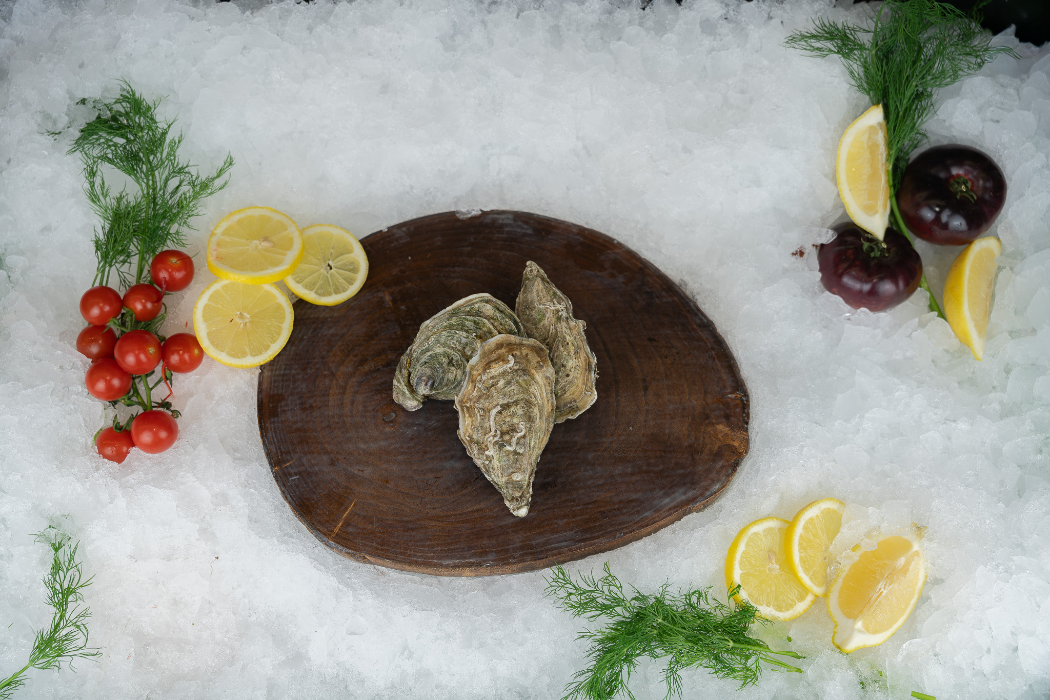 La ostra viva es el bocado más directo al mar: textura tersa, salinidad elegante y final yodado. Sírvela al natural con limón, o con una vinagreta de chalota. Mantener siempre refrigerada y en posición cóncava para que conserve su agua. Consumir lo antes posible para máxima frescura.