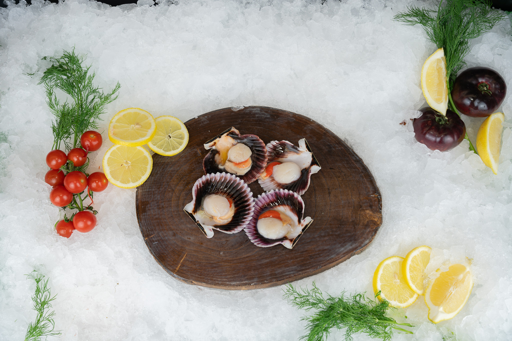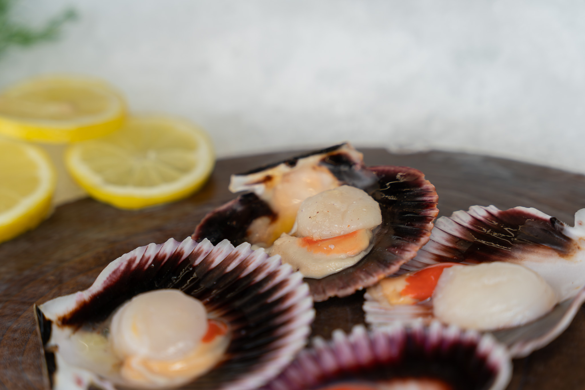 Zamburiñas perfectas para plancha. Carne delicada y dulce, ideal con ajo, perejil y un toque cítrico.